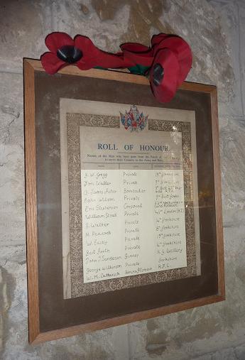 a framed Roll of Honour naming those who left the parish to serve in the