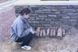 We could see where the road from the village had been widened. The fields are slightly higher than the road and the road-widening had exposed some of the land which had been below the surface until now. In August of 1916 the Germans had fortified this road and turned it into a trench - the "Fabeck Graben" - and there were quite a few battlefield relics lying around, including a clutch of extremely large shells. (More shells, smaller this time, were laid out against the cemetery wall, awaiting collection.)