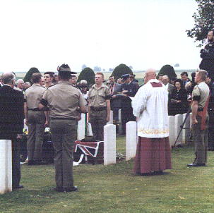 My friend Pat was standing in the cemetery before the ceremony began when an Australian dressed in a suit walked towards him. They caught each other's eye and the Australian said, "All right, Mate?" They exchanged a few words and both moved on. Later, during the burial, the same man stepped out from the crowd to recite the scripture reading, and a quick look at the order of service revealed that he was the Honourable Ian McLachlan, MP, the Australian Minister for Defence. He had arrived early and waited for the service to begin just like the rest of us.
