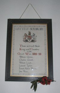 | Inside St Adelines hang the rolls of honour for both World Wars