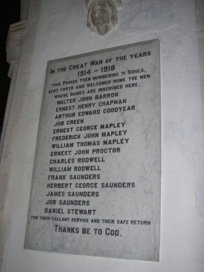 In the Great War of 1914 to 1918 a total of 15 of the village's population