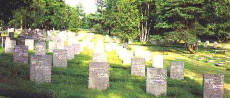 Cannock Chase as it is now, with its steeply-rising, pine-covered slopes, is very reminiscent of parts of Germany and this is why, in 1964, it was chosen as the site of the Deutscher Soldatenfriedhof - the cemetery which now contains the burials of the great majority of German servicemen who died in the UK during both world wars. The cemetery was built by the German War Graves Commission, with grant aid provided by the Federal Republic of Germany. Today, the care of the cemetery is in the hands of the Commonwealth War Graves Commission. The cemetery lies along both sides of small valley, the neatly-kept grass and orderly rows of graves contrasting effectively with the random positions of the native birch-trees which grew there before the cemetery was laid out.