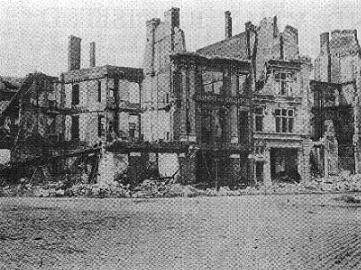No tree showed signs of life and no two bricks anywhere seemed left upon one another. Then we descended into Ypres passing a light railway which carried civilian passengers along the road east of Chateau Segard and Swan Chateau! Here the aspect of the country had changed so much that it was difficult to get one's bearings except by some such spot as "Shrapnel Corner" or "Woodcote House". The remainder of that day we spent in Ypres - the only spot which seemed spoilt by the genuine 'tripper'. Here small boys with picture postcards and girls selling chocolate bombarded us with their attentions. The Belgian authorities are doing their best to leave the Cloth Hall and Cathedral in their ruins as a permanent memorial of British heroism. |