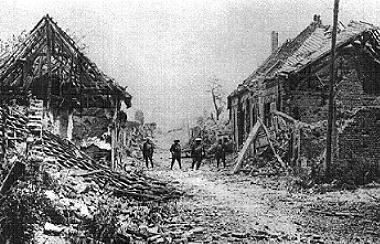 We turned to the left over Hill 70 into Lens itself, a place one had always wondered about and seen perhaps through glasses from the Lorette heights or the Bouvigny Woods. Here was destruction deliberate, naked and unashamed, but at the same time more obvious activity in the work of reparation. In the very centre of the town, on what used to be the principal church, stands a board 'Lens veut renaître', a typical motto for the unconquerable spirit of northern France.
