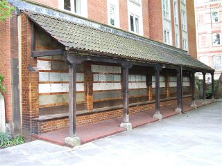 We return to Fleet Street, where the presses are now all silent, and from there two former postmen make their way up to St. Martin's Le Grand (home of the General Post Office, and for many years HQ of the old Post Office Rifles) and the 'Postman's Park' for a well earned sit down. Never miss this delightful place when in the City. Opened in 1880 and developed out of the graveyards of three old churches, it was here in 1887 that painter and sculptor George Frederic Watts conceived the idea of a national memorial to heroic men and women. Ordinary people who may otherwise have gone unnoticed. Their names and deeds to be set out in hand-lettered tiles.