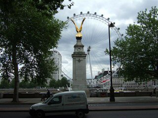 It looked across the Thames to the Festival of Britain site once, that wondrous show that in the early 1950s was to lift us all out of the gloomy war years, but now Sir Reginald Bloomfield's (designer) and William Reid Dick's (sculptor) memorial to the Air Forces of the Great War watches as people from all over the world take a look at London from the air again. This time via the London Eye. 'In memory of all ranks of the Royal Naval Air Service, Royal Flying Corps, Royal Air Force and those Air Forces from every part of the British Empire who gave their lives in winning victory for their King and Country, 1914-1918' - so says the inscription. But that great golden eagle, there since 1923, now also remembers those of another war. |