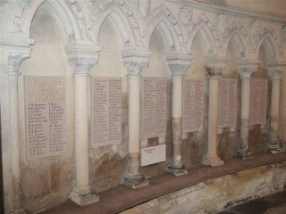 | At the Temple Church, where they talk of nothing else now but The Da Vinci Code - filmed in part here, and where Langdon and Neveu's search for the teacher begins - carved grotesque heads look down on the names of those from the Inner Temple that were killed. Over 300 of them, there down at the west end of the church and in the part called 'The Round' column after column are recorded in a cavern of Purbeck marble. | ![]() |